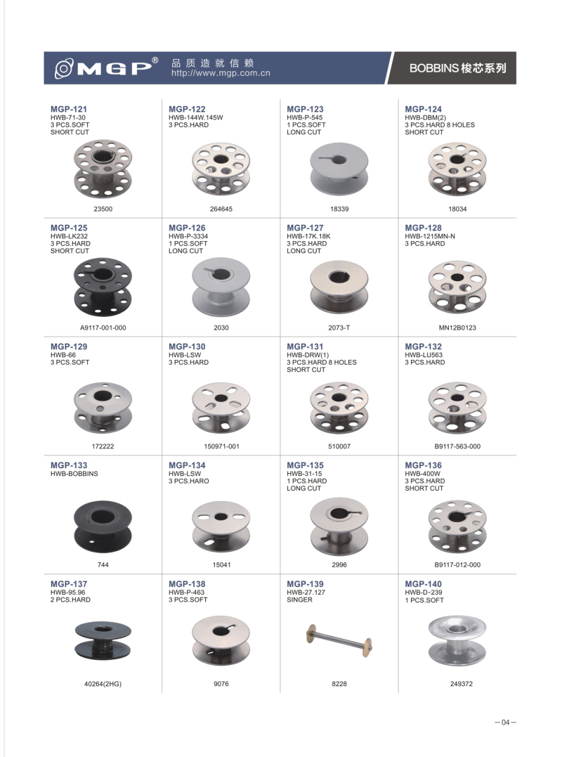 寧波市宏威機械制造有限公司 MGP品牌成立于1990年,總部位于浙江寧波。企業分為浙江寧波、浙江紹興、河北、三大生產基地。全產業鏈自主生產的全產業鏈。是國內較大的梭芯生產基地和縫紉機配件的企業之一。是我國縫配件梭芯、梭殼縫配件出口量較大企業。MGP品牌產品與各大整機公司配套,并銷售80多個地區,深受客戶信賴。